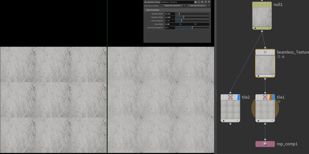 This free Houdini HDA turns non-tileable textures into tileable textures by reducing the visible seams.